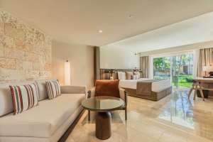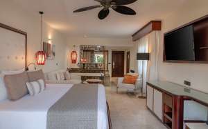 La Junior Suite Beachside est une chambre spacieuse située à quelques pas de la plage. Elle offre une vue imprenable sur les eaux turquoise de Playa Bávaro. Cette chambre est idéale pour les clients qui souhaitent se détendre et se faire plaisir à deux pas de la mer des Caraïbes.