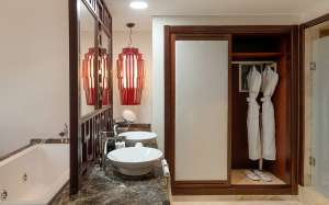 Équipements : Lit king size ou deux lits simples - Baignoire tourbillon - Canapé convertible - TV à écran plat dans le salon – Terrasse – minibar - évier double - un peignoir et des chaussons - boîte de sécurité électronique - fer à repasser à vapeur - des services de thé et de café - sèche-cheveux – wifi - miroir .