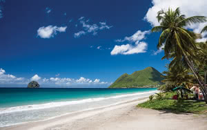 La plage du Diamant est réputée pour sa beauté naturelle saisissante, avec des eaux turquoise, une vue imprenable sur le Rocher du Diamant, et un horizon dégagé.